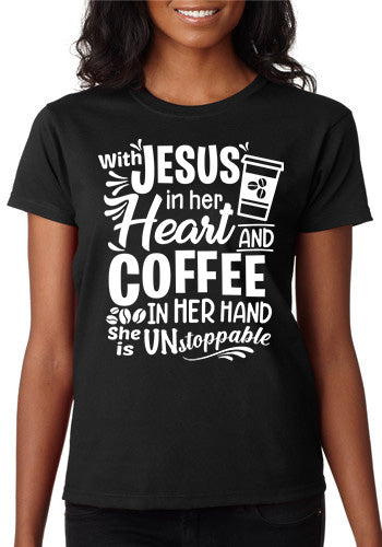 With Jesus in Her Heart and Coffee in Her Hand She is Unstoppable T-Shirt